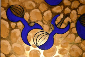 ALONGSIDE HER SCULPTURAL WORK, Marmentini explores similar themes through painting — a two-dimensional extension of the forms, forces, and symbols she brings to life in stone.”