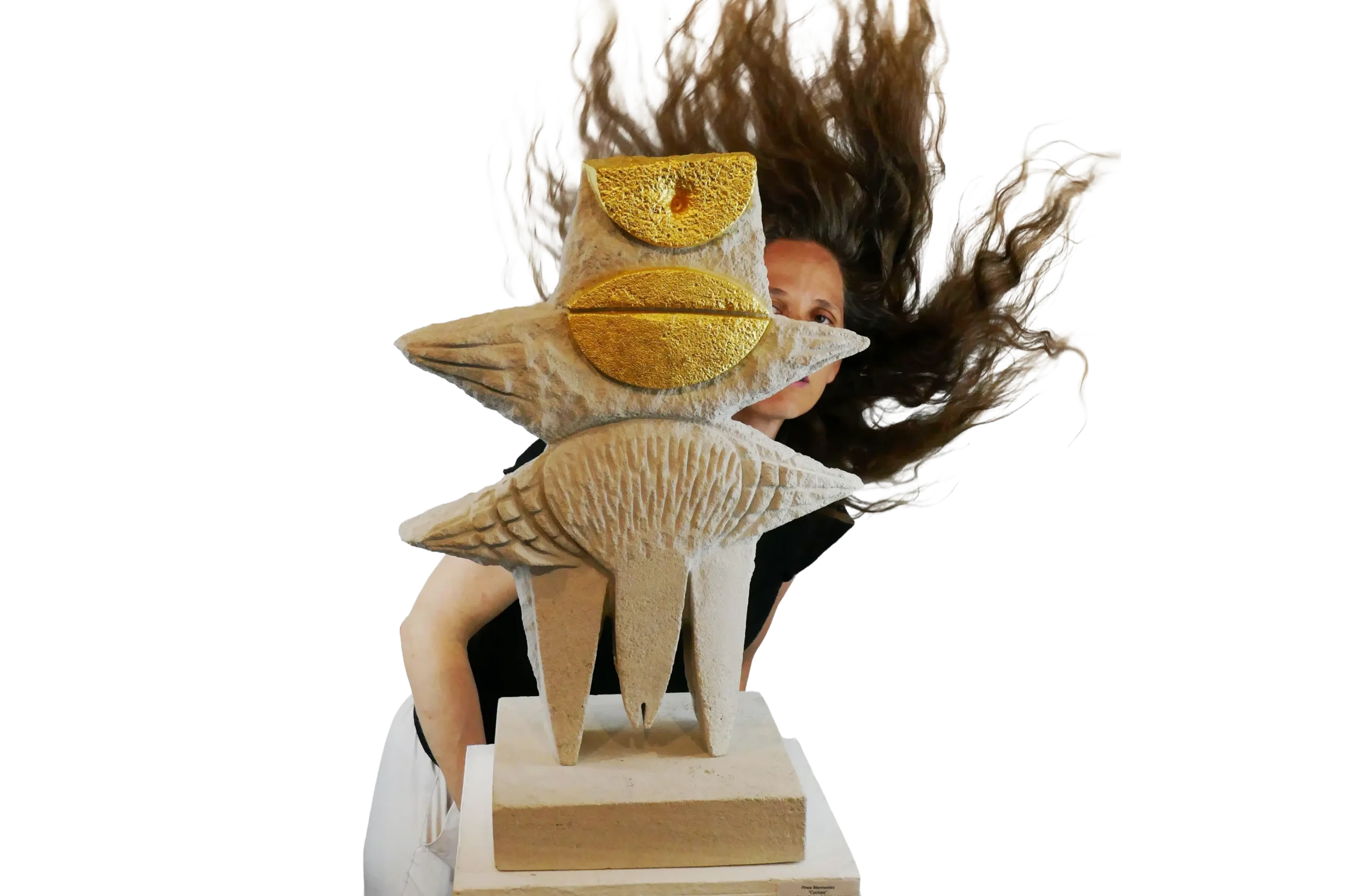 She describes herself as a traveler through time. In her Opus series, she channels the geology of each stone, revealing deep memory and monumental calm. In her Beasts and Winged Creatures, she evokes beings that live between parallel realities — hybrid forms that straddle the boundary between the human, the animal, and the divine.